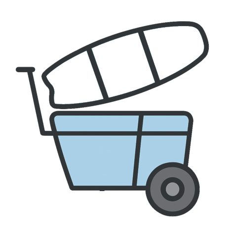 La KiteBox transporte tout ton matos — ailes, board, pompe — sans effort, jusqu'à la plage
